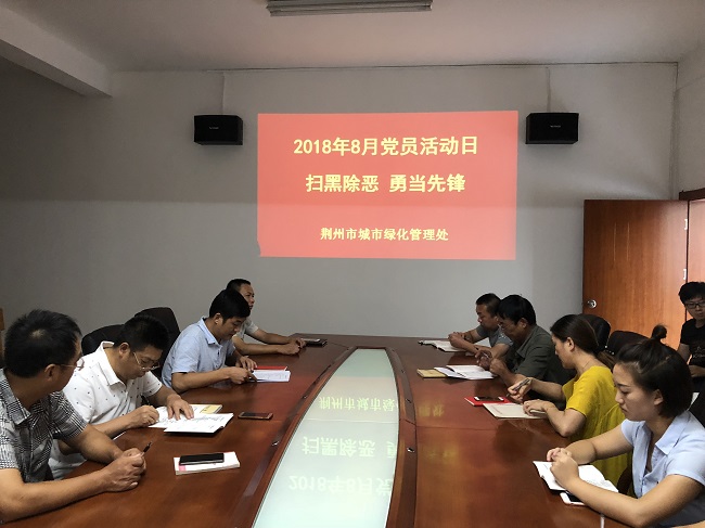 荊州市城市綠化管理處 “掃黑除惡、勇當先鋒”主題黨日活動開展情況 為進一步貫徹落實習近平總書記關(guān)于開展掃黑除惡專項斗爭重要指示精神,教育引導單位廣大黨員同志提高政治站位,帶頭抵制黑惡勢力,帶頭參與掃黑除惡專項斗爭,為鏟除黑惡勢力滋生土壤提供堅強組織保證,2018年8月10日,荊州市城市綠化管理處以“掃黑除惡、勇當先鋒”為主題,開展了一次主題黨日活動。