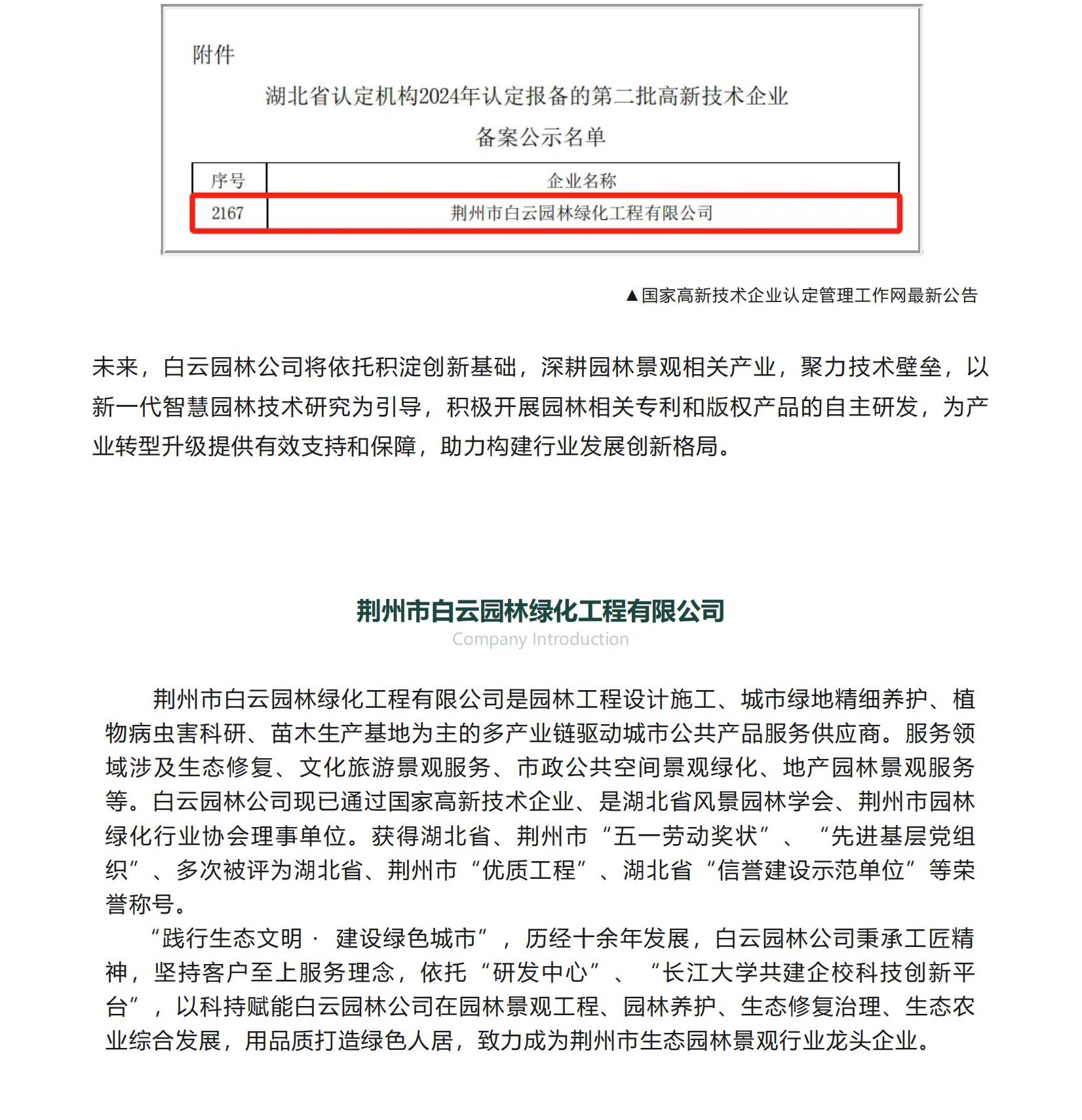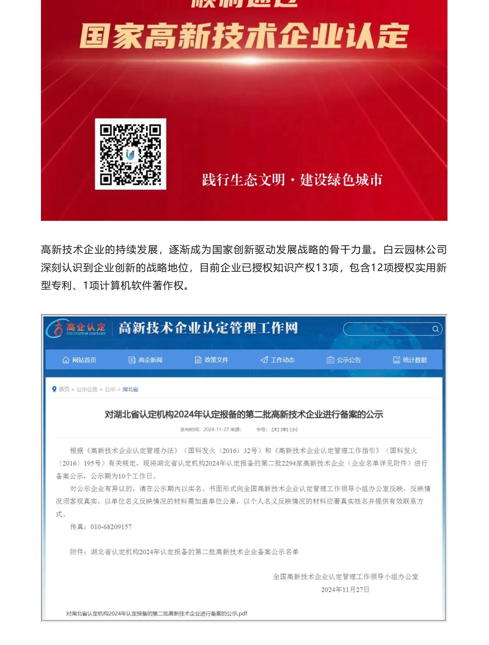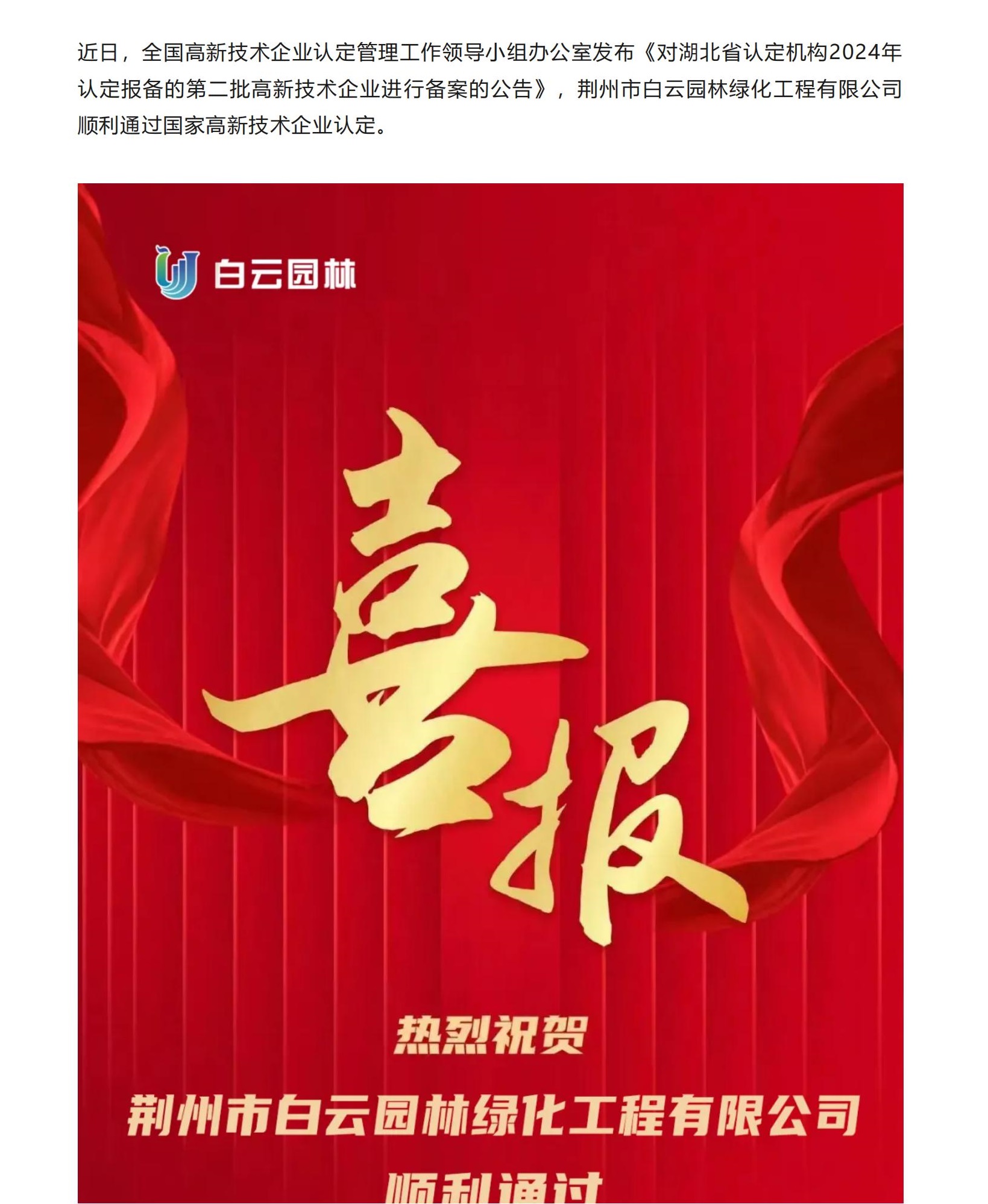喜報丨白云園林公司成功獲湖北省...