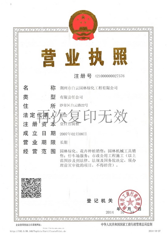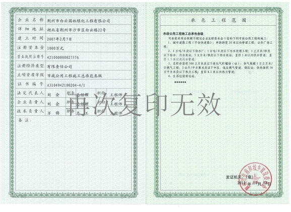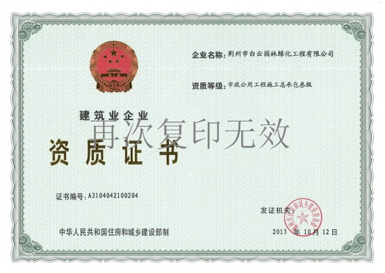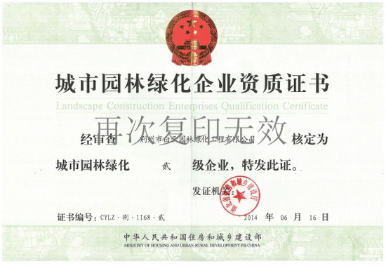 城市園林綠化企業(yè)資質(zhì)證書